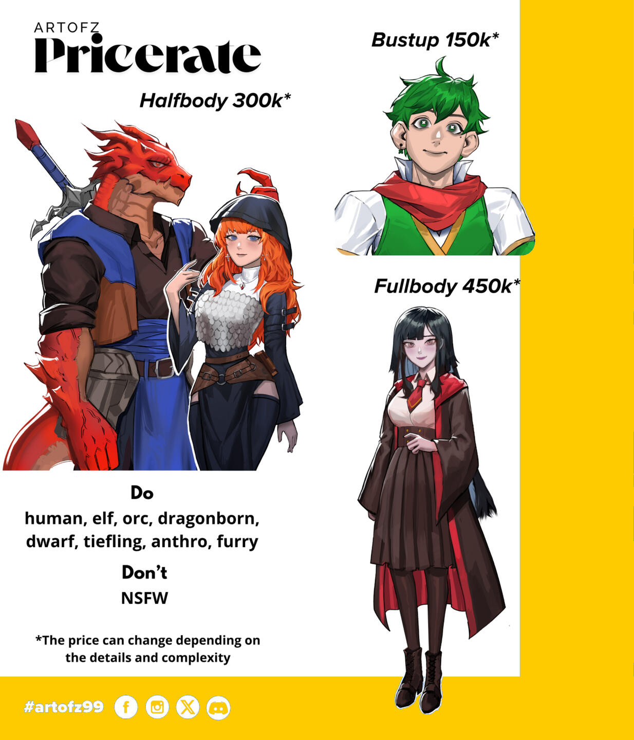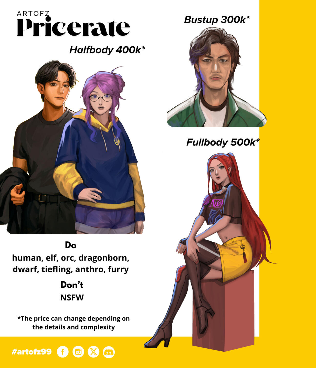 Anda harus mencantumkan brief chracter dengan detail (ekspresi/pose/dll) sehingga meminimalisir revisi (jatah revisi hanya 3x).